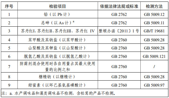 固體復合調味料抽檢項目: